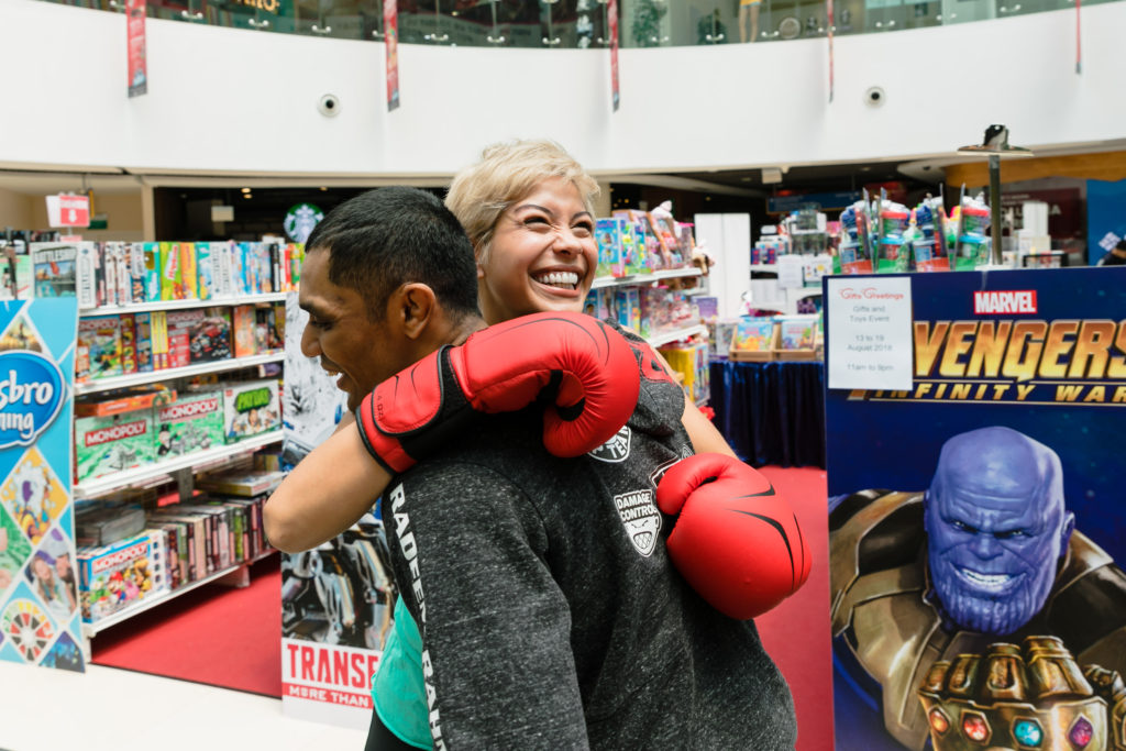 At 12noon, fans were treated to a chance to watch their favorite Fly Entertainment artistes in action. TV presenter Nikki Muller and actors Noah Yap & Adele Wong, attempted the fitness challenges with me. We all had good laugh with celebrity trainer Radeem Rahman, not to mention a good work-out.