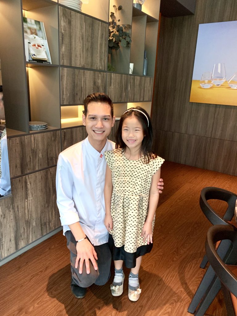 M5 loved the scones so much she had four in one go. In fact, she loved it so much she went up to compliment Chef Joe Leong himself. He was sweet enough to pose for a photograph with her after a quick chat, much to our delight.