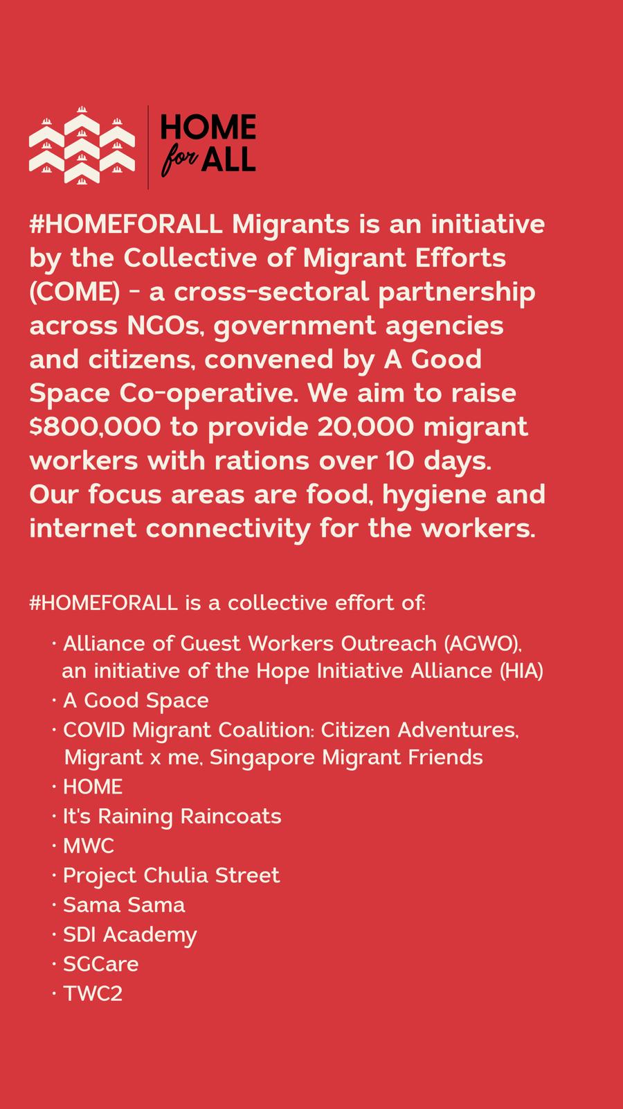 Hence, the logical thing to do help all parties was to have the donors pay the restaurants to send food to frontliners. This arrangement worked out fantastically, with thousands of meals across the island, without food wastage. When my quarantine ended and I went back to work, it was difficult to manage the coordination. Hence I collaborated with Majulah Movement & My Treat SG to continue to send food to healthcare professionals. At the same time, since we had the logistics in place, we also arranged for meals to be sent to migrant workers in need. This food project made the news! https://cnaluxury.channelnewsasia.com/people/singapore-healthcare-heroes-favourite-food-12807178 Separately, through a collaboration with other societies and charities, we raised more than $800,000 for migrant workers on giving.sg.